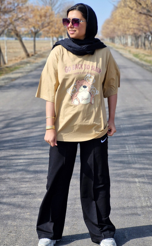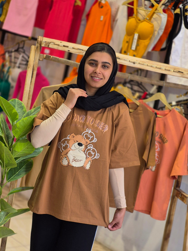 تیشرت لانگ دخترانه زنانه مدل باکسی خرسی