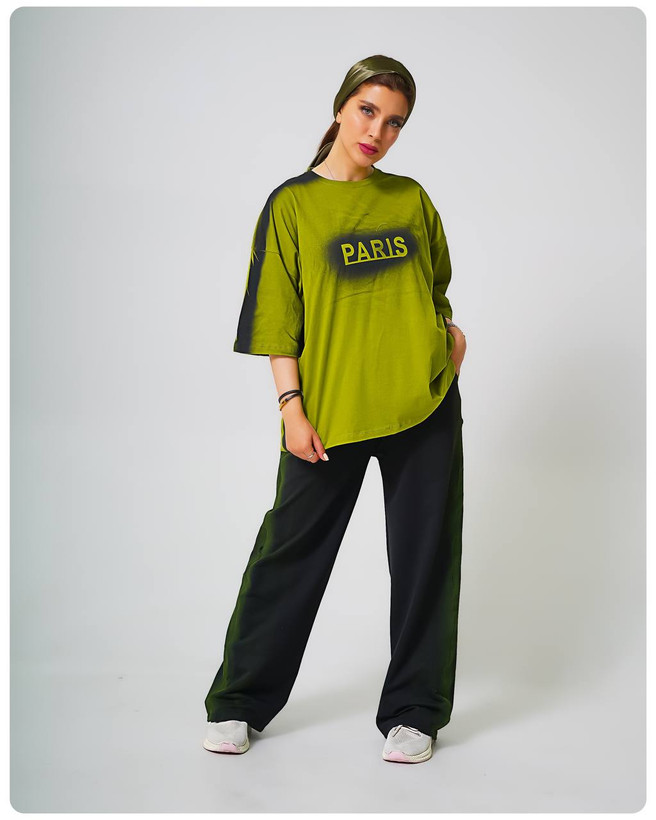 👚 ست تیشرت سوپر لانگ با شلوار فول بگ گلکسی
