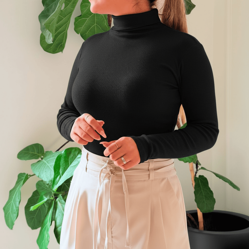 بادی زنانه یقه اسکی و کاربردی، انتخابی عالی برای استفاده روزمره و استایل زیر مانتو است.