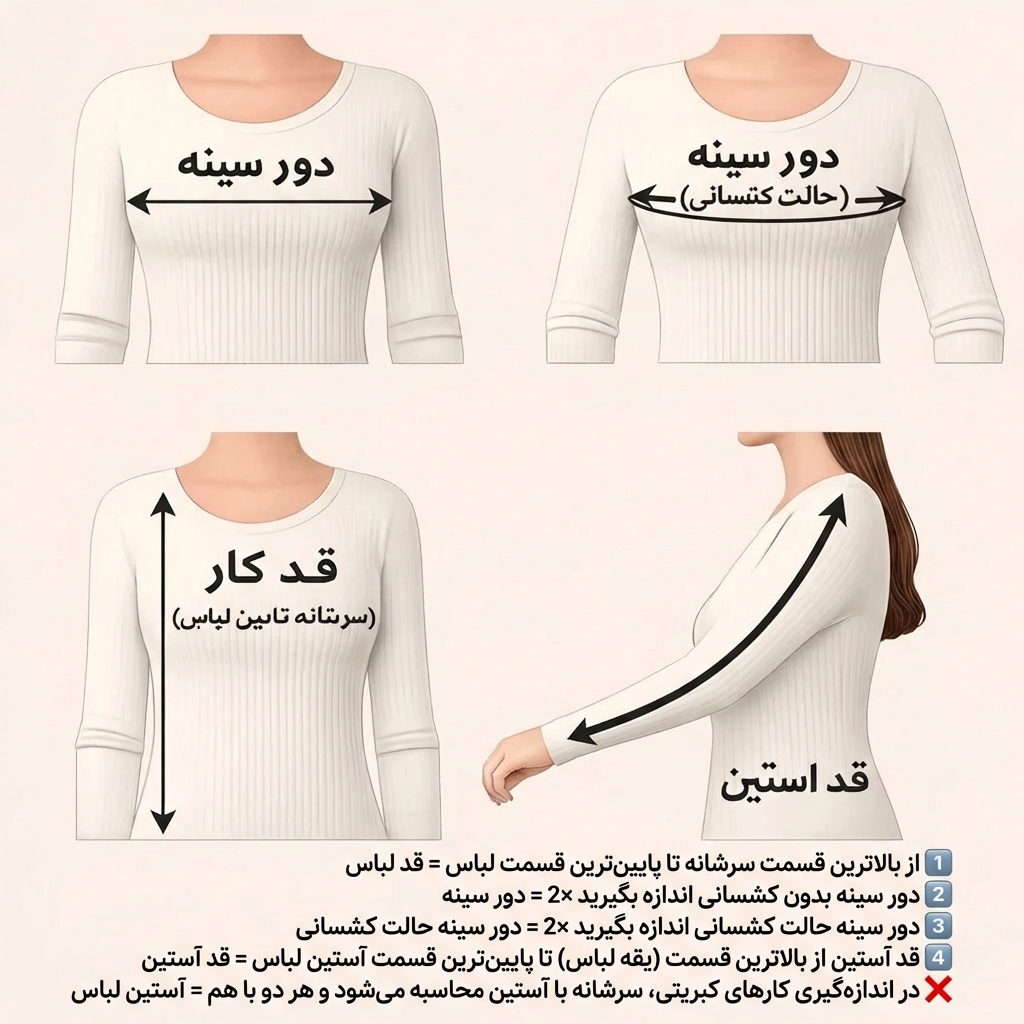 ❌️برا اینکه سایزبندی دقیق بتونید انتخاب کنید میتونید به راهنمای تصاویر که براتون گزاشتیم مراجعه کنید